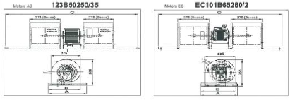 Комплект с 3, 4 или 6 скоростен мотор и центробежен вентилатор за диапазони до 5250m3/h