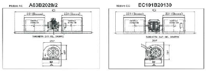 Комплект с 3, 4 или 6 скоростен мотор и центробежен вентилатор за диапазони до 3000m3/h